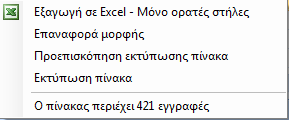 Με δεξιό κλικ επάνω στον εμφανιζόμενο πίνακα, μπορείτε να εξάγετε τα αποτελέσματα σε Excel για περαιτέρω επεξεργασία (γραφήματα, ανάλυση, κτλ)
