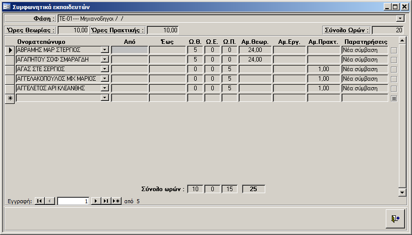 Στην περίπτωση που οι ώρες κάποιων Εκπαιδευτών στα Θέματα Εκπαίδευσης μεταβληθούν αφού έχουμε εκτυπώσει τα αντίστοιχα Συμφωνητικά, μπορούμε: