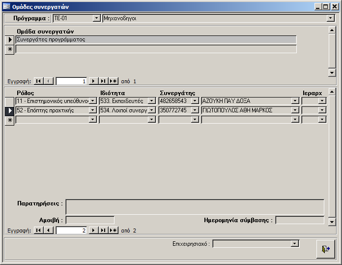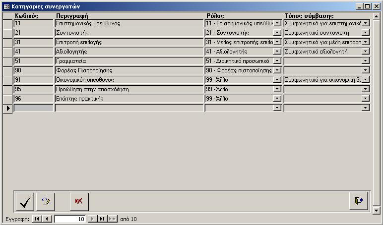 Στην οθόνη αυτή δημιουργούνται ρόλοι τους οποίους αναλαμβάνουν οι συνεργάτες κατά την υλοποίηση των προγραμμάτων.