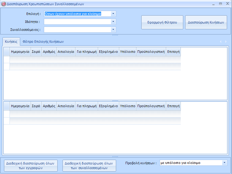 - οι κινήσεις με υπόλοιπο προς κλείσιμο